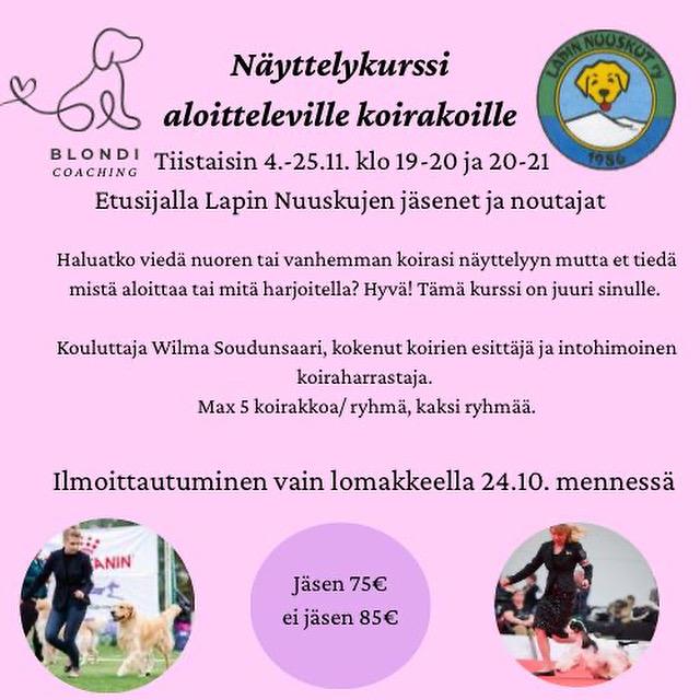 Iloisia noutoja kurssi tulee taas! Lisätietoja alla ja tällä lomakkeella pääset ilmoittautumaan: https://forms.gle/NmiyUXhHyGvoFAWi8 Ilmoittauduthan 12.3 mennessä, tervetuloa mukaan! 🐶
