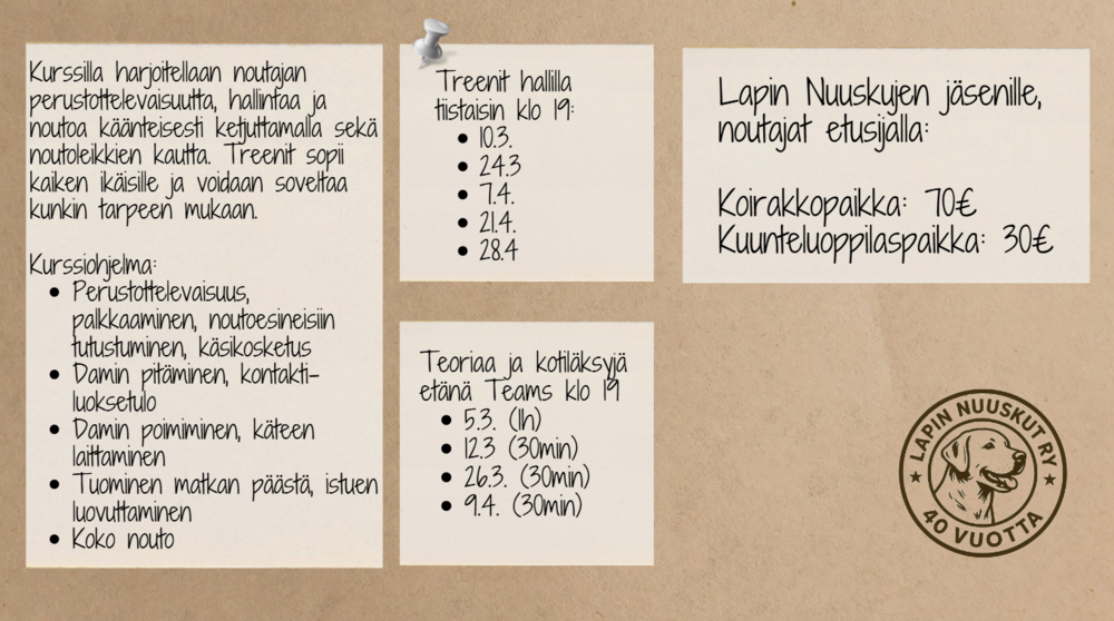 Ilmoittautuminen auki perinteiselle noutokurssillemme: